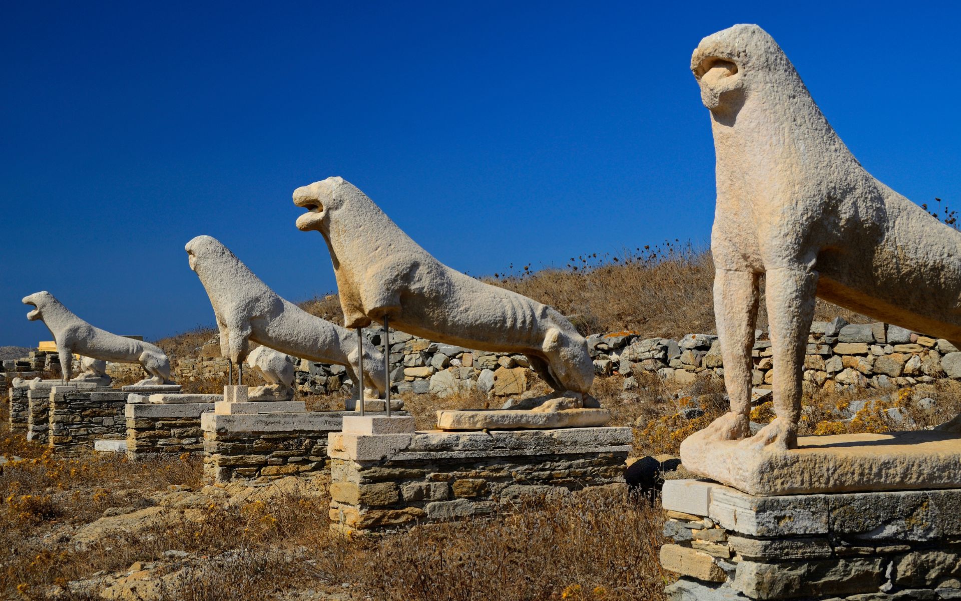 A nivel artístico, Delos destaca por su impresionante legado arqueológico. Sus ruinas, que incluyen templos, teatros, casas y esculturas, ofrecen una visión fascinante del esplendor de la antigua Grecia. Entre los hallazgos más destacados se encuentran las mosaicos y las esculturas que adornaban los templos y edificios públicos de la isla. Las imágenes de dioses y escenas mitológicas que aún pueden verse en Delos reflejan la destreza artística de la civilización helénica. Además, la vía de los leones, una de las principales atracciones de la isla, presenta una fila de leones de piedra que han sido una de las imágenes más icónicas del patrimonio griego.