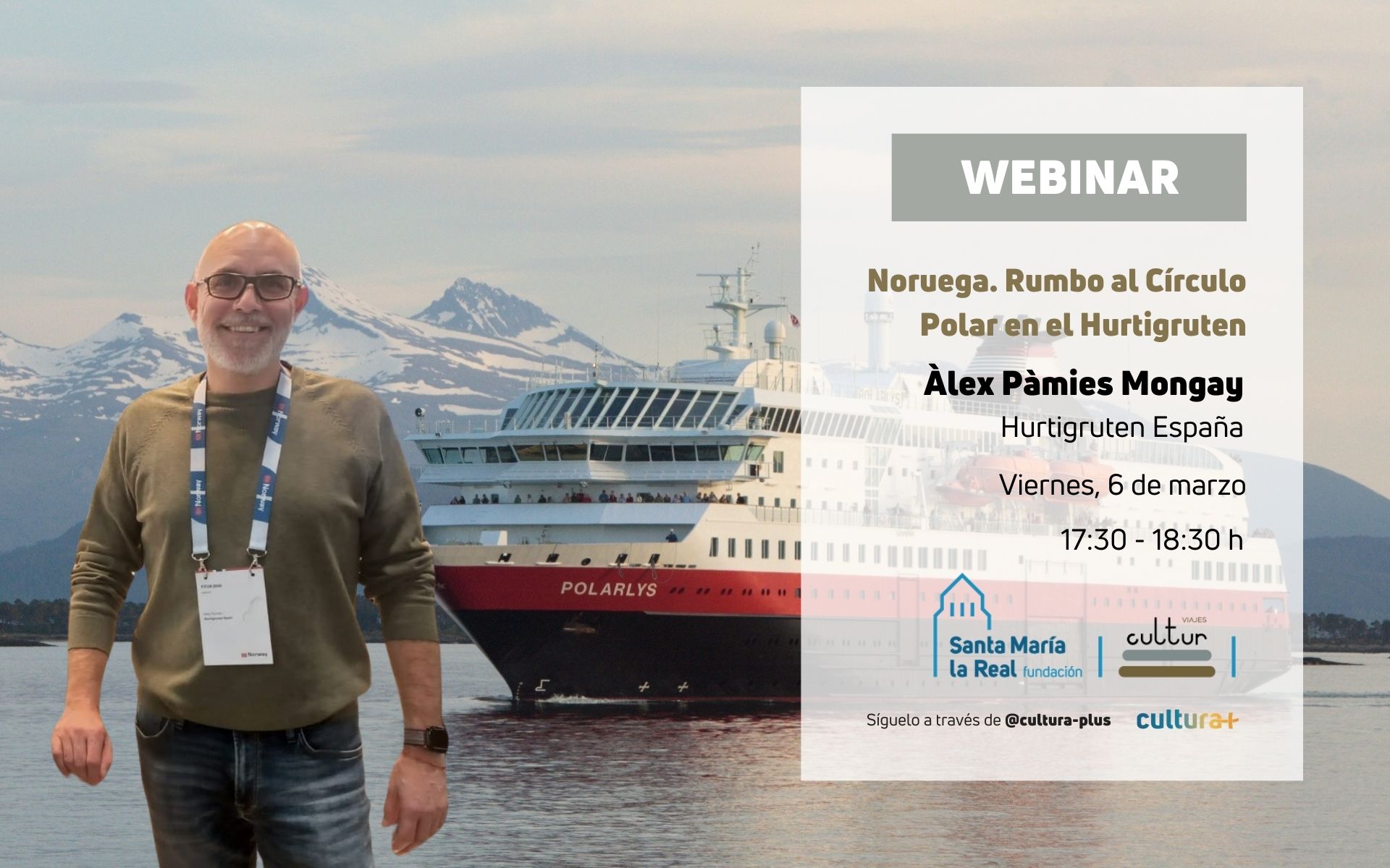 El próximo viernes 6 de marzo, de 17:30 a 18:30, celebraremos una conferencia informativa para presentar nuestro viaje “Noruega. Rumbo al Círculo Polar en el Hurtigruten”, que tendrá lugar del 13 al 22 de octubre de 2026. Esta sesión permitirá descubrir en detalle esta experiencia única para explorar la espectacular costa de Noruega: sus fiordos...Leer más